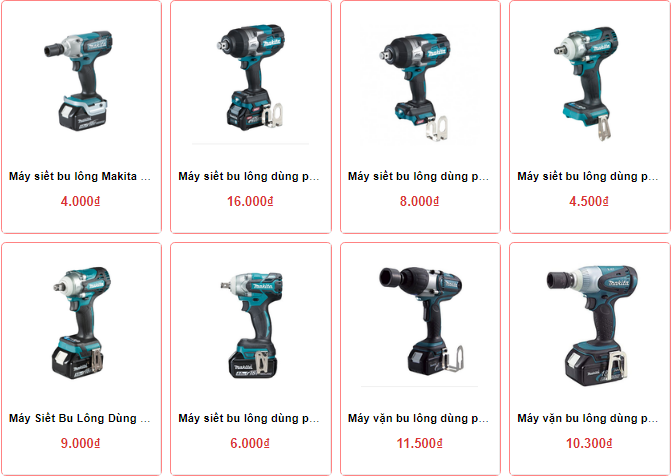 Dụng cụ Makita với hàng ngàn mặt hàng chính hãng nhập khẩu các nước : Nhật Bản, Hàn Quốc, Thái Lan, Đài Loan, Singabore, Úc, Mỹ, Đức...